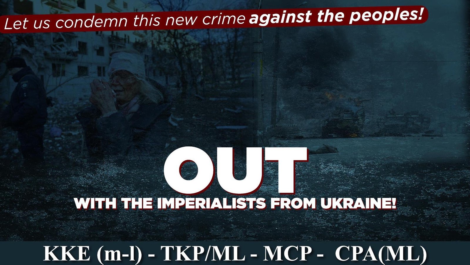 The Ukrainian people’s tragedy continues to intensify with the imperialist invasion of Russia on February 24th. This people has been in the epicentre of the conflict between the American and Russian imperialism for years. The USA on the one hand (with the EU keeping close) are trying to include Ukraine in NATO in order to corner Russia. Russia, on the other, understands that such a development brings her to a more disadvantageous position regarding their rivalry with USA. The invasion and bombardment by the Russian army on the pretext of the independence of Donbas are far from relevant with the peoples’ right for independence and self-determination. It is a move subsequent to the constant pressure, caused by the Maidan coup and the intervention of the West, that supported and armed fascist and neo-nazi groups, in order to step into a country which is in a critical position concerning the encircling of Russia. It is the consequence of the policy of the USA, who, using the Zelensky puppet-government as an instrument, stepped over the red lines drawn, and transferred the crisis to the Ukrainian borders. This imperialist invasion by Russia brings closer the threat of an imperialist war. The situation in Ukraine is the result of the imperialist rivalry and the failure of the workers and communist movements to become the obstacle to the policy of the imperialists. This conflict leads the people in Ukraine as well as others, to become the victim in an unjust and reactionary war. The crocodile tears shed by the imperialists of the USA, NATO, the EU and the capitalist classes supporting them have no connection with the anti-war movement. It is a provocation for the peoples of the world when those that have been bombing countries and massacring peoples appear as the defendants of peace. What is needed today is that the peoples and the revolutionary communist forces become the obstacle to the imperialists’ goals in the area. To fight so as to give rise to the anti-war and anti-imperialist movement. It is clear that there can be no peoples’ movement, that will ultimately block the unjust wars and the bloodshed, if it does not adopt an anti-imperialist direction. The need to have the anti-war, anti-imperialist demonstrations grow in every country is imperative. These demonstrations, besides the condemnation of the unjust war, should have as a goal in each country, that there be no help in military or war equipment, that there be no support through bases or soldiers to the forces of the imperialists. We have to demand that there be no military involvement in the crime against the Ukrainian people. This struggle is a struggle against the local capitalist classes who support the imperialist interventions, but also a struggle against imperialism. It is the internationalist, in-practice solidarity of the peoples everywhere on earth towards the suffering of the Ukrainian people. Out with USA-NATO-Russia from Ukraine We defend the friendship and solidarity of the Russian and Ukrainian peoples Solidarity with the Ukrainian people No facilitation for the imperialists, no support for the conduct of the unjust war For the common struggle of all the peoples against war and imperialism!