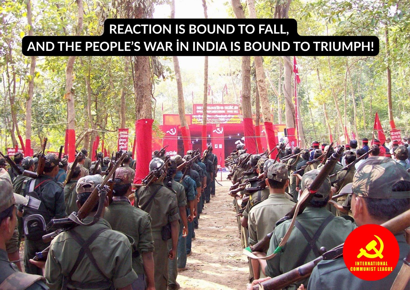 The International Communist League stand firmly, shoulder to shoulder, with the CPI (Maoist), the People’s Guerrilla Liberation Army, the Masses of the Revolutionary Front in the countryside and in the cities, under the banner of Marxism-Leninism-Maoism, the banner of People’s War, and reject and condemn any attempt to spread confusion, pessimism and capitulation. We are fully convinced that our comrades in India, led by the Central Committee, will defeat the LIC-strategy by developing more People’s War. Nothing can defeat the Power of the organized Masses, and the under the leadership of the proletarian vanguard of the Indian revolution, the glorious CPI (Maoist), the People of India will continue to sweep away Imperialism, Bureaucratic Capitalism and Semi-Feudalism with People’s War, it will victoriously culminate the New Democratic Revolution conquering Power in the whole country and it will build Socialism and, with Cultural Revolutions, march ahead to Communism together with the rest of Mankind. This the fulfillment of the Laws of History, it is a expression of the very Law of movement of Matter – the traitors can say what they want – it is a Fact.